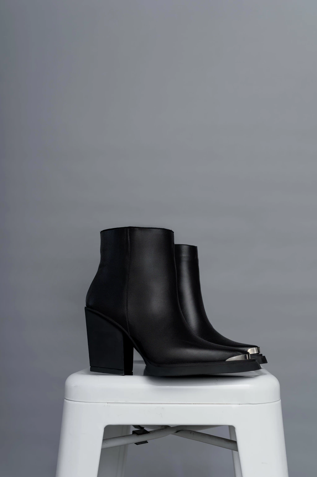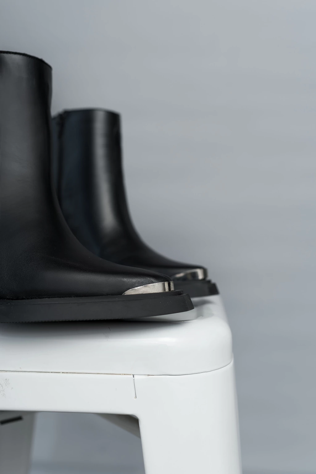 Bota en punta de caña caña realizada en cuero vacuno, cierre interno y el interior esta forrado en forreria de cuero. Base súper liviana de goma. 100% cuero vacuno. Puntera metálica. Altura de caña: 12cm